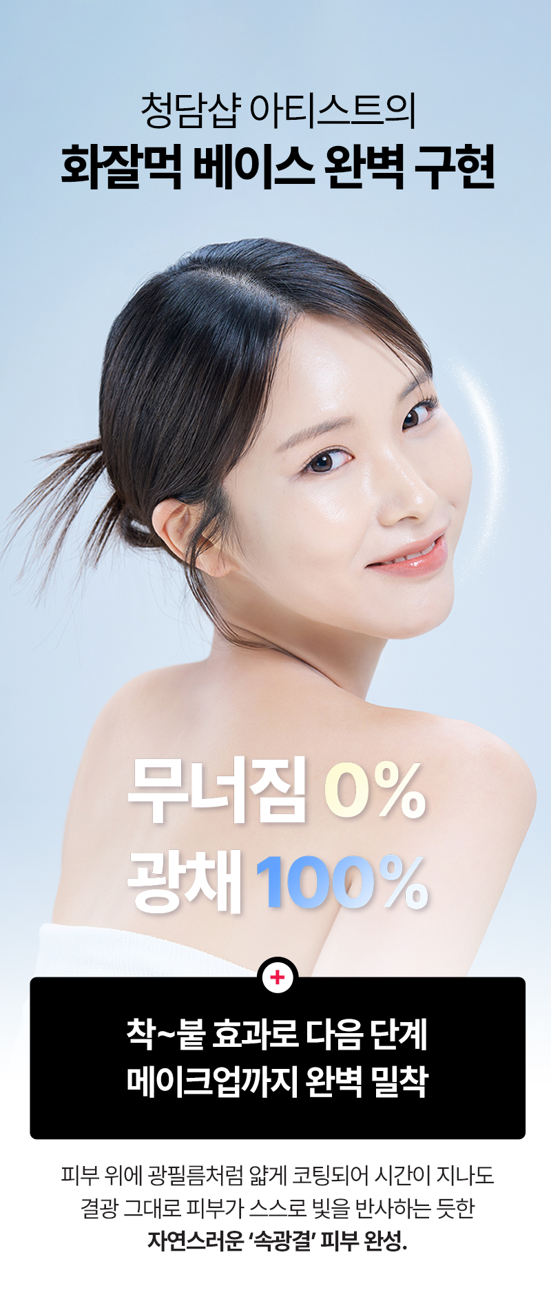 피부 위에 이불처럼 밀착되어, 결광과 탄탄함을 동시에. 하루종일 지속되는 랩핑 보습으로 피부 본연의 힘을 되살리세요.